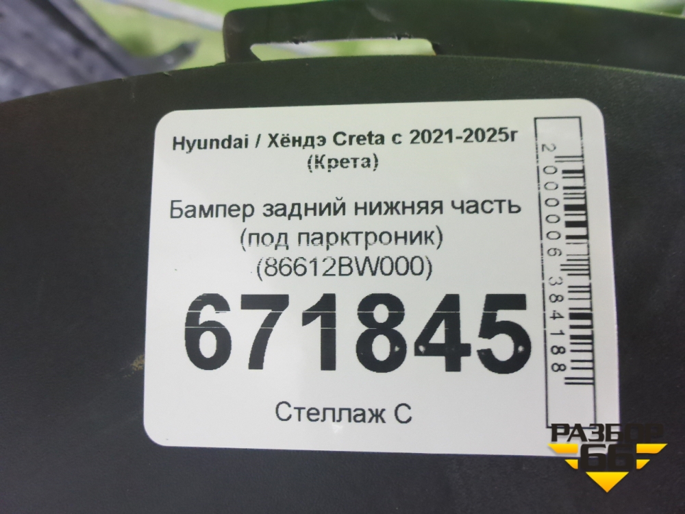 Бампер задний нижняя часть (под парктроник) (86612BW000) для Hyundai Creta с 2021-2025г (Крета) в Екатеринбурге