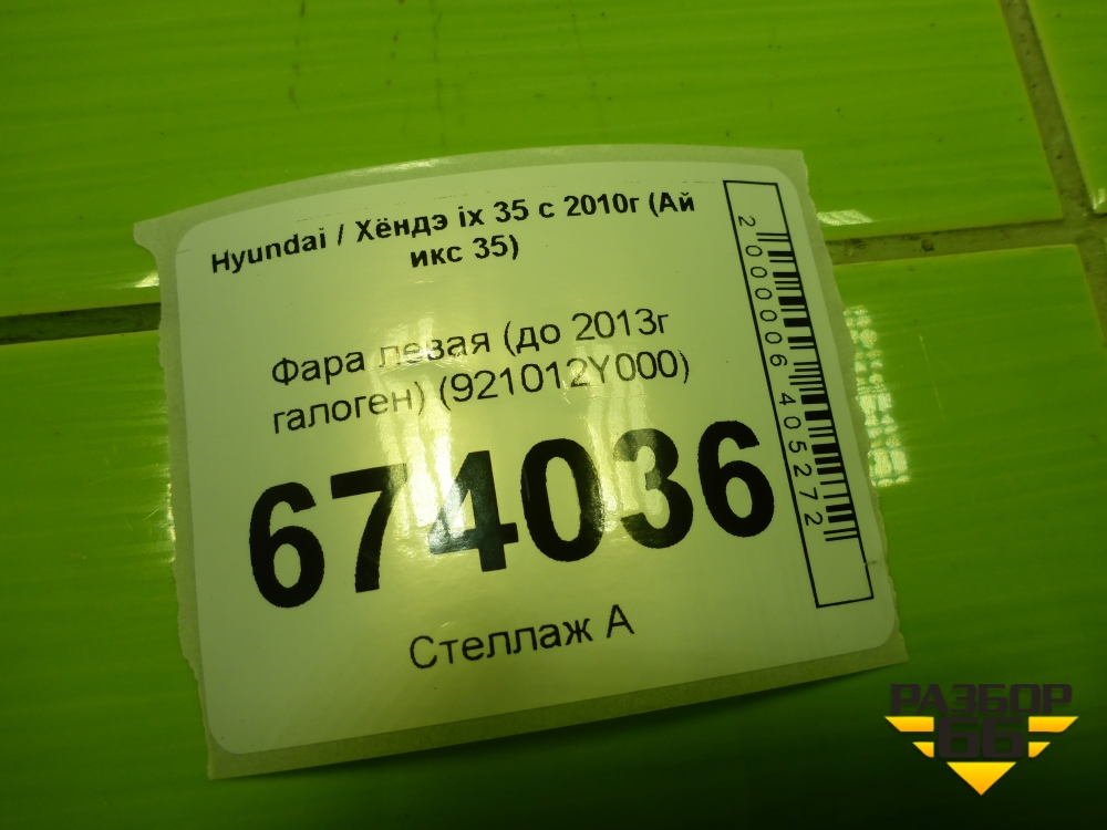 Фара левая (до 2013г галоген) (921012Y000) для Hyundai ix 35 с 2010г (Ай икс 35) в Екатеринбурге