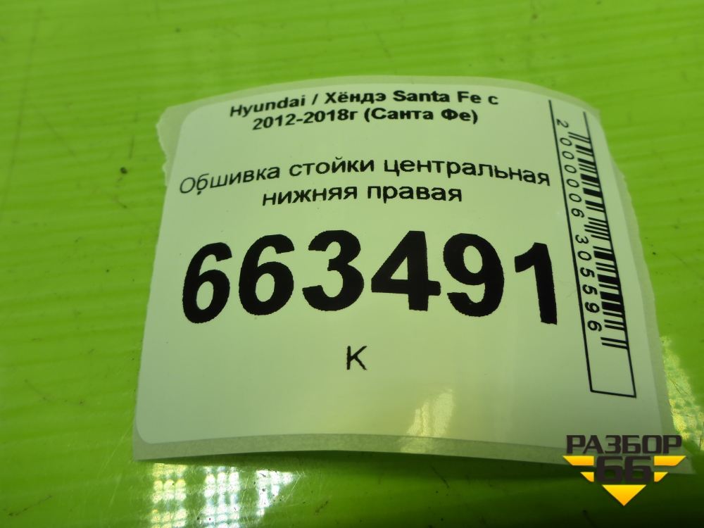 Обшивка стойки центральная нижняя правая (858462W000) для Hyundai Santa Fe с 2012-2018г (Санта Фе) в Екатеринбурге