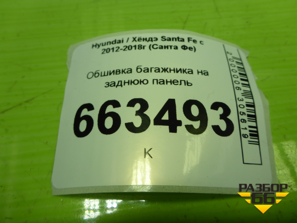 Обшивка багажника на заднюю панель (857712W000) для Hyundai Santa Fe с 2012-2018г (Санта Фе) в Екатеринбурге