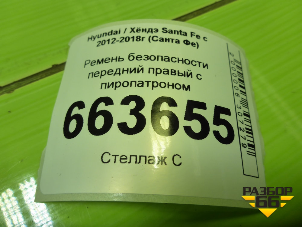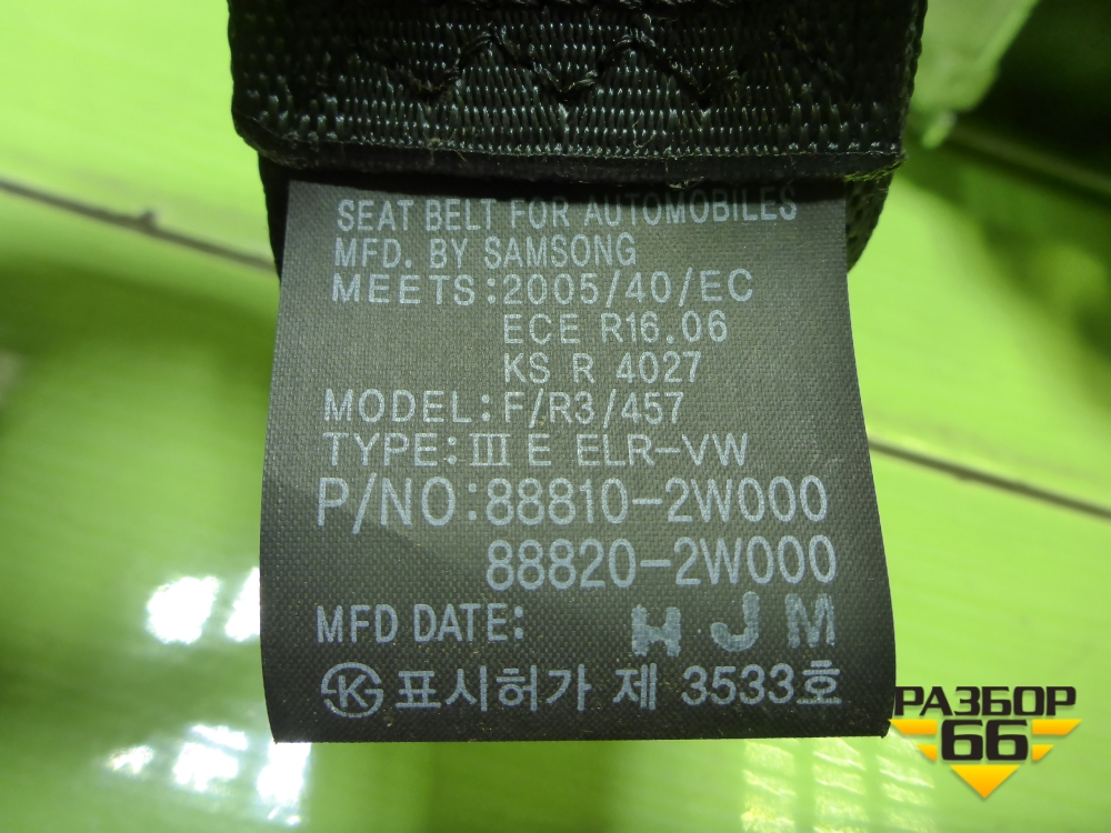 Ремень безопасности передний правый с пиропатроном (888102W000) для Hyundai Santa Fe с 2012-2018г (Санта Фе) в Екатеринбурге