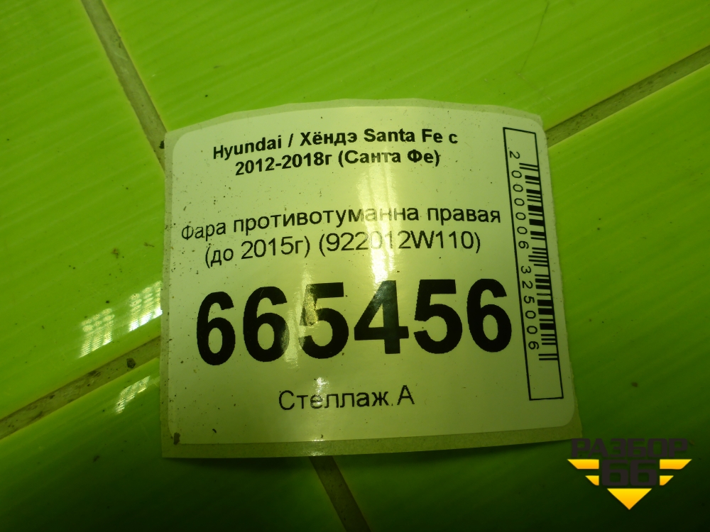 Фара противотуманна правая (до 2015г) (922012W110) для Hyundai Santa Fe с 2012-2018г (Санта Фе) в Екатеринбурге