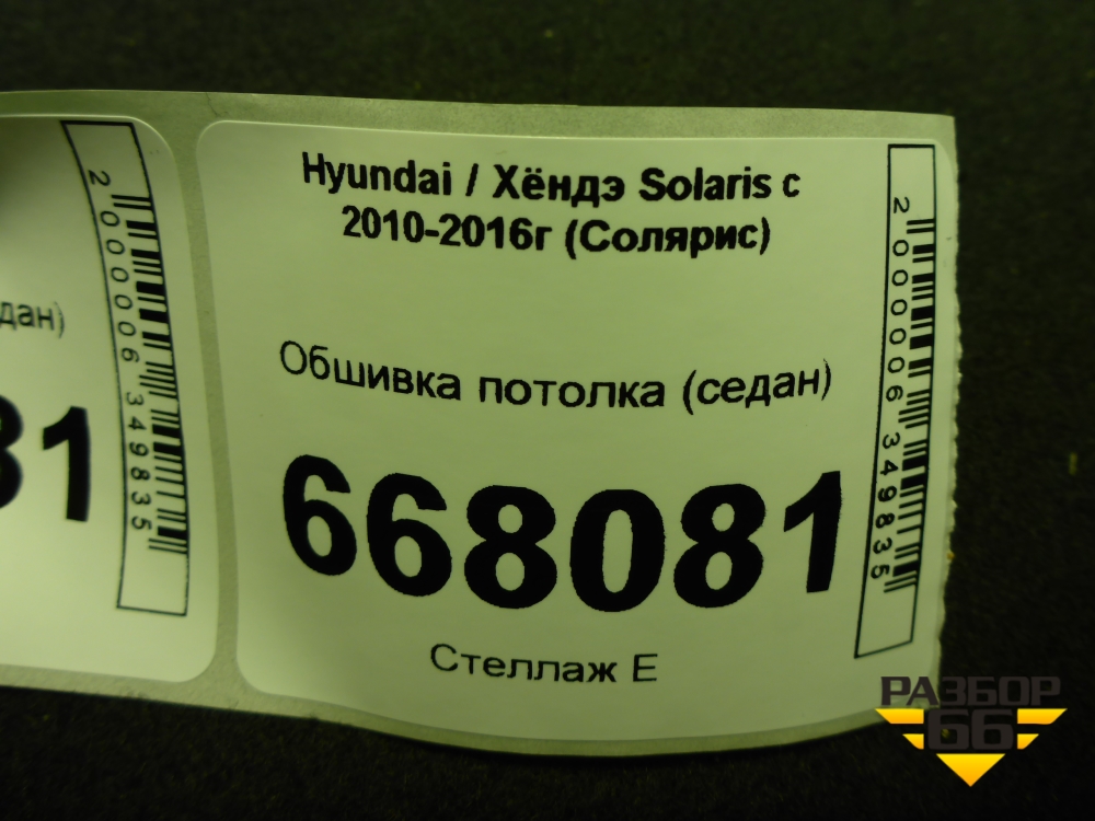 Обшивка потолка (седан) для Hyundai Solaris с 2010-2016г (Солярис) в Екатеринбурге