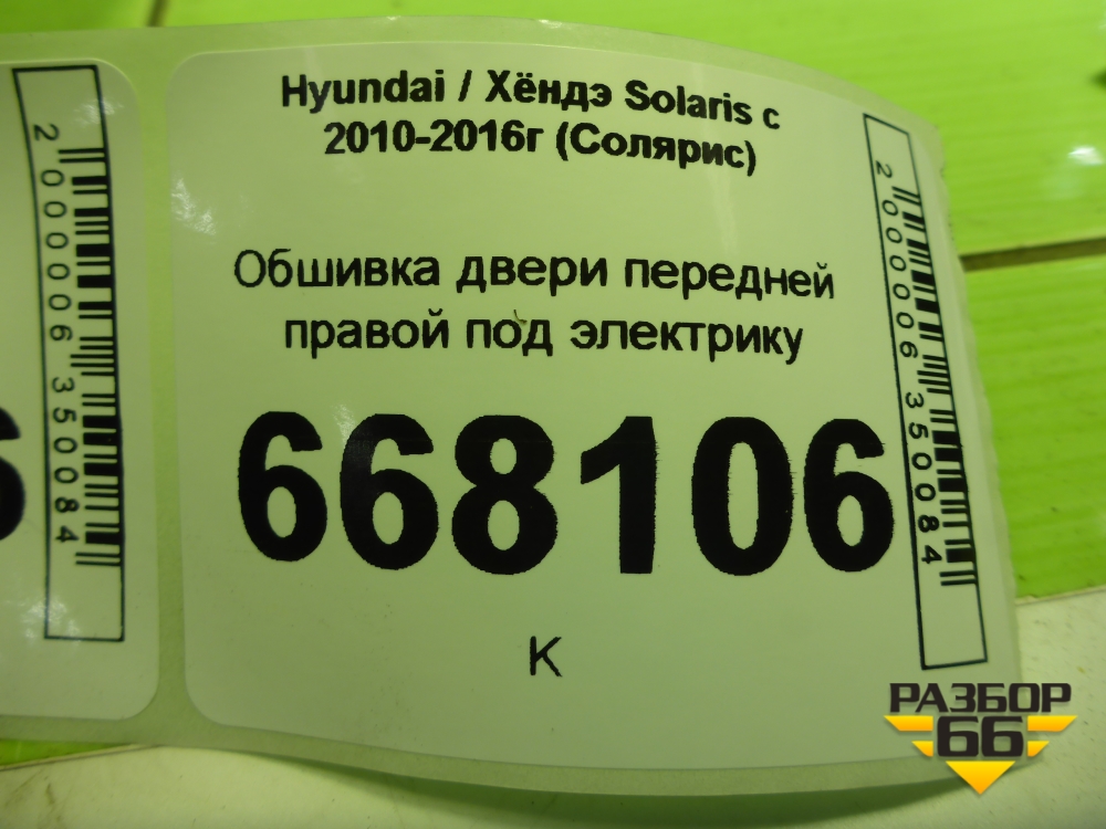 Обшивка двери передней правой под электрику (823604L010) для Hyundai Solaris с 2010-2016г (Солярис) в Екатеринбурге