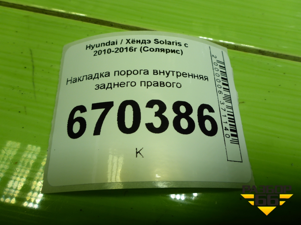 Накладка порога внутренняя заднего правого (858861R000) для Hyundai Solaris с 2010-2016г (Солярис) в Екатеринбурге