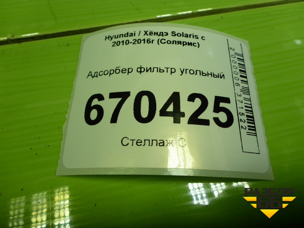 Адсорбер фильтр угольный (314004L000) для Hyundai Solaris с 2010-2016г (Солярис) в Екатеринбурге