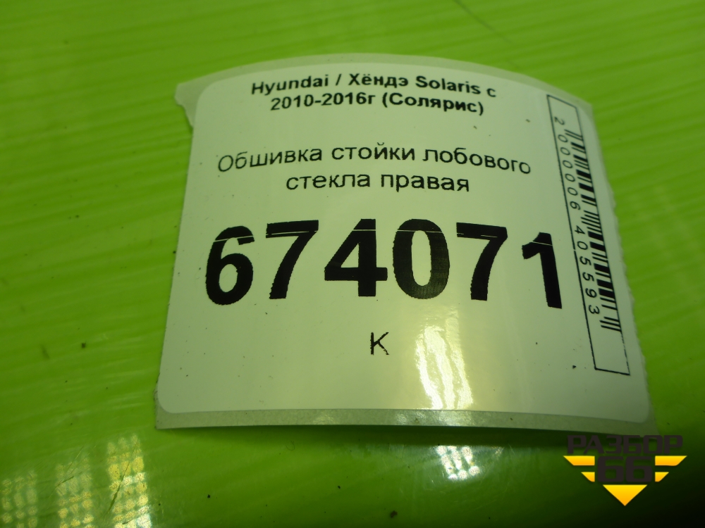 Обшивка стойки лобового стекла правая (858201R000) для Hyundai Solaris с 2010-2016г (Солярис) в Екатеринбурге