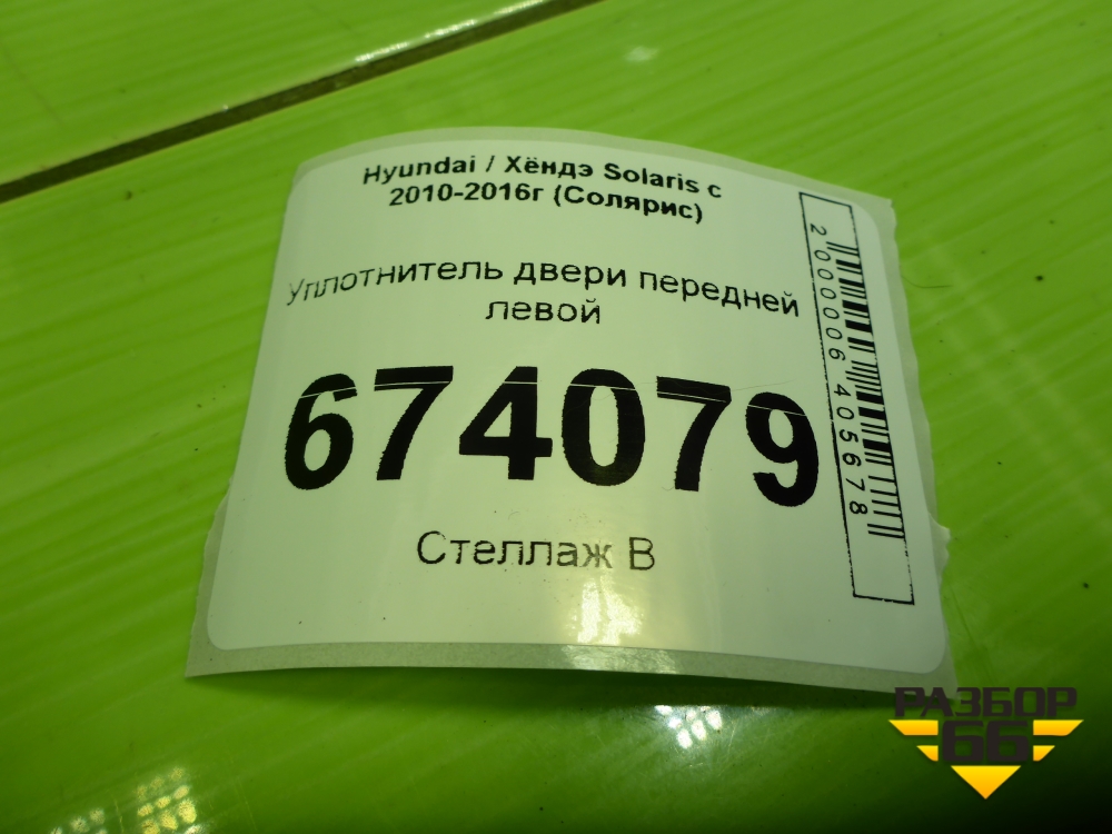 Уплотнитель двери передней левой для Hyundai Solaris с 2010-2016г (Солярис) в Екатеринбурге