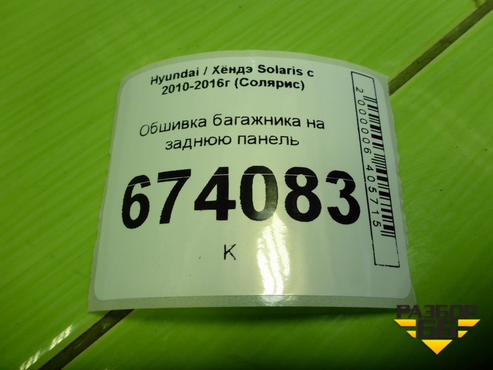 Обшивка багажника на заднюю панель (хетчбэк) (857711R500) для Hyundai Solaris с 2010-2016г (Солярис) в Екатеринбурге