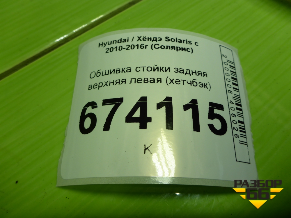 Обшивка стойки задняя верхняя левая (хетчбэк) (858501R500) для Hyundai Solaris с 2010-2016г (Солярис) в Екатеринбурге