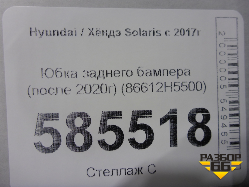 Юбка заднего бампера (после 2020г) (86612H5500) для Hyundai Solaris с 2017г (Солярис) в Екатеринбурге
