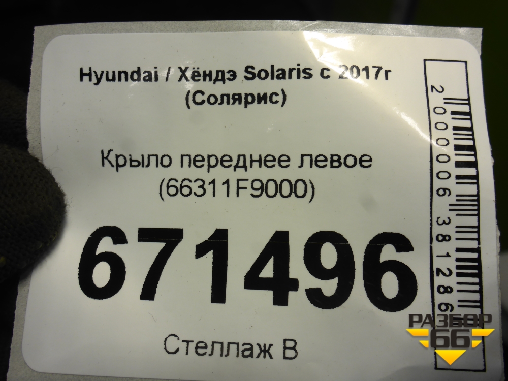 Крыло переднее левое (66311F9000) для Hyundai Solaris с 2017г (Солярис) в Екатеринбурге