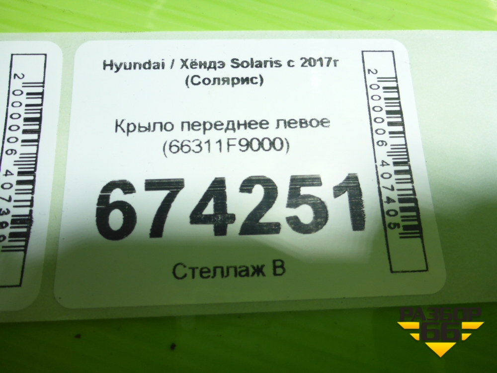 Крыло переднее левое (66311F9000) для Hyundai Solaris с 2017г (Солярис) в Екатеринбурге