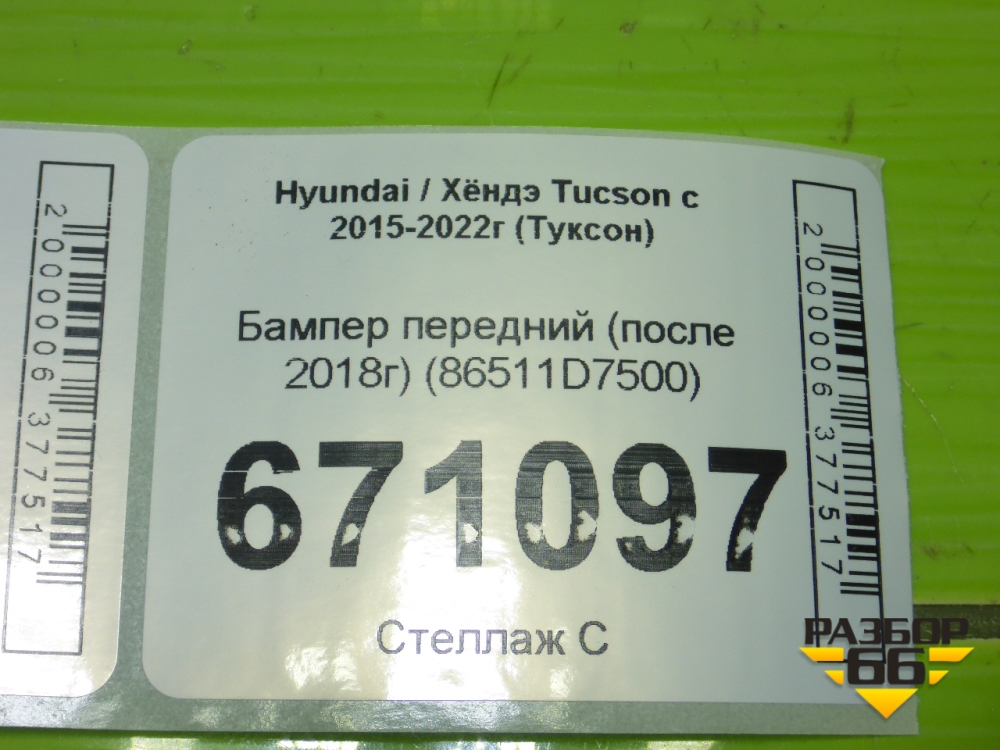 Бампер передний (после 2018г) (86511D7500) для Hyundai Tucson с 2015-2022г (Туксон) в Екатеринбурге