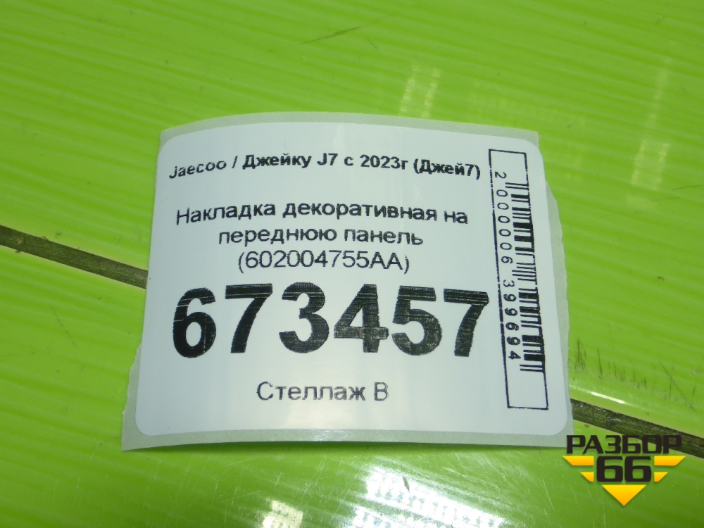 Накладка декоративная на переднюю панель (602004755AA) для Jaecoo J7 с 2023г (Джей7) в Екатеринбурге
