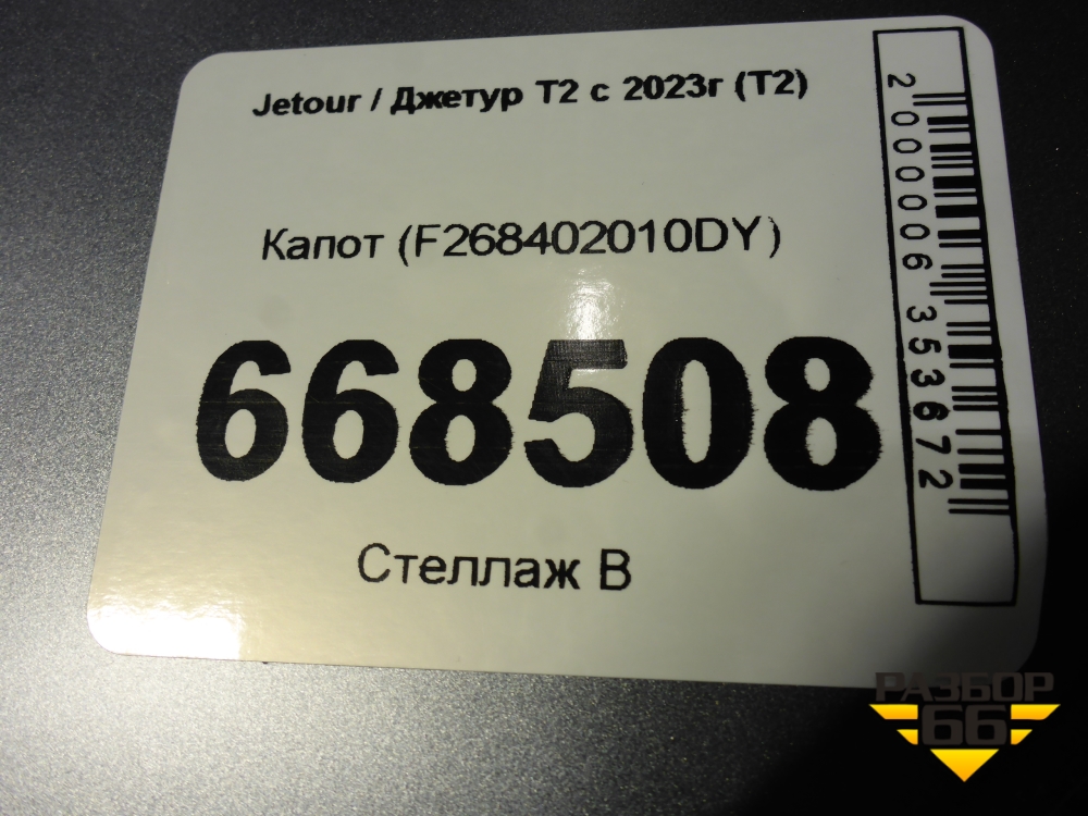 Капот (F268402010DY) для Jetour T2 с 2023г (Т2) в Екатеринбурге