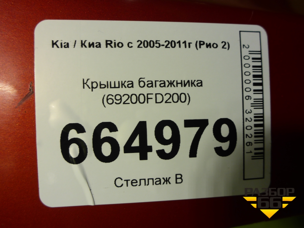 Крышка багажника (69200FD200) для Kia Rio с 2005-2011г (Рио 2) в Екатеринбурге
