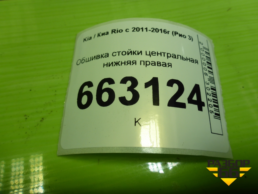Обшивка стойки центральная нижняя правая (858454Y000) для Kia Rio с 2011-2016г (Рио 3) в Екатеринбурге