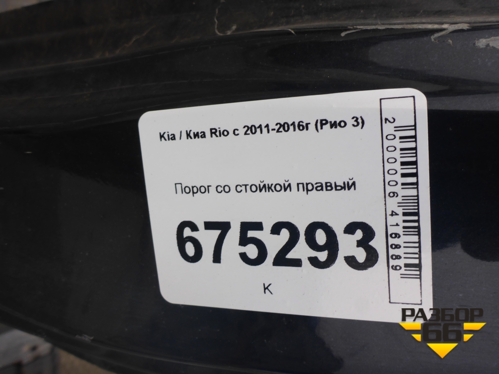 Порог со стойкой правый для Kia Rio с 2011-2016г (Рио 3) в Екатеринбурге