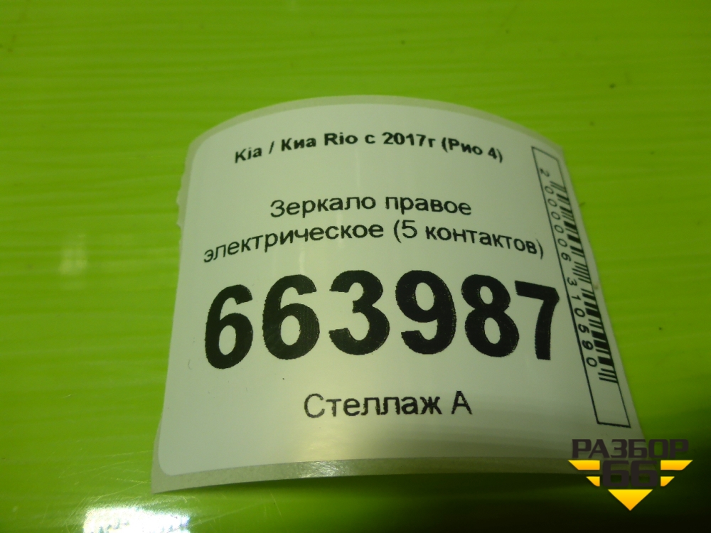 Зеркало правое электрическое (5 контактов) для Kia Rio с 2017г (Рио 4) в Екатеринбурге