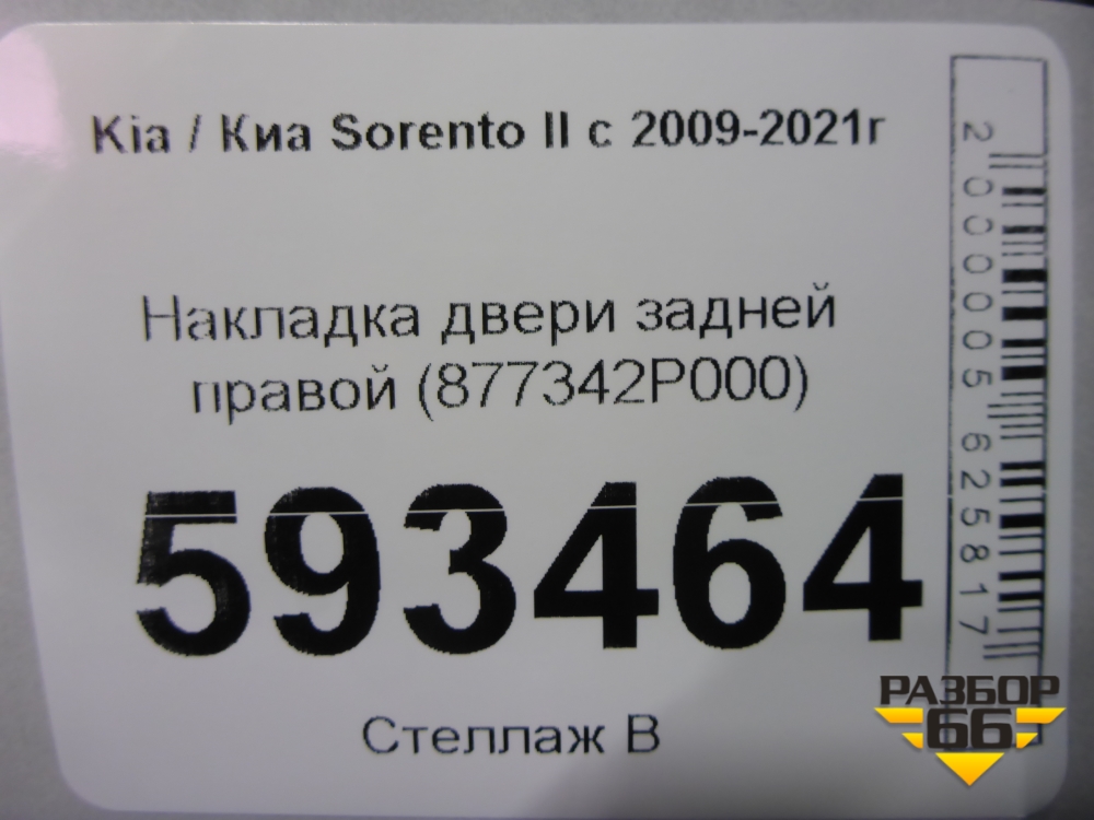 Накладка двери задней правой (877342P000) для Kia Sorento II с 2009-2021г (Соренто 2) в Екатеринбурге