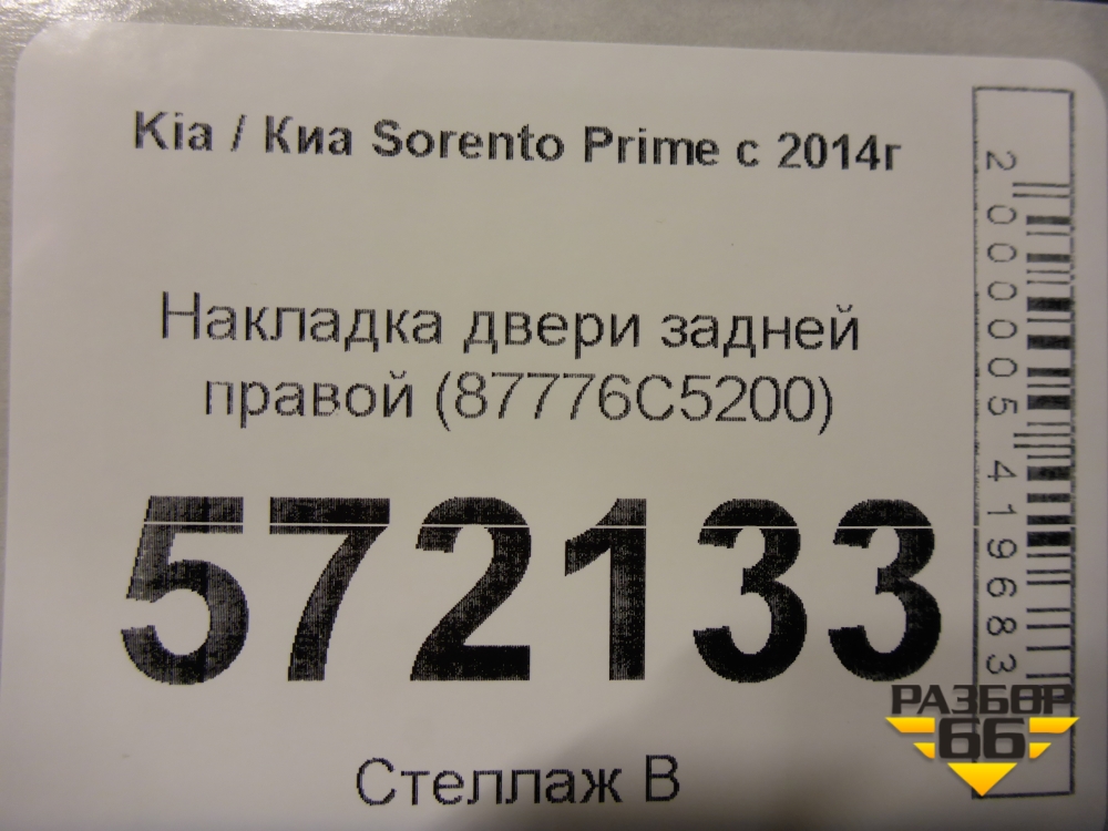 Накладка двери задней правой (87776C5200) для Kia Sorento III Prime с 2014-2020г (Соренто3) в Екатеринбурге