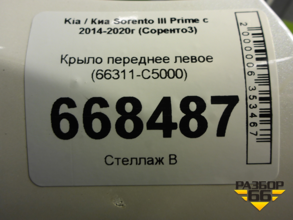 Крыло переднее левое (66311-C5000) (66311C5000) для Kia Sorento III Prime с 2014-2020г (Соренто3) в Екатеринбурге