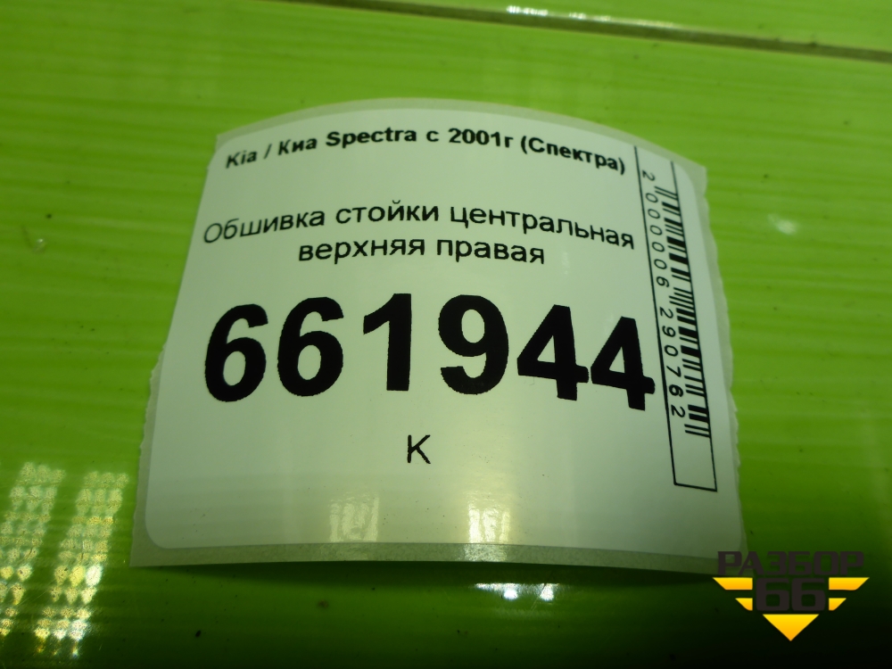 Обшивка стойки центральная верхняя правая (22725402210) для Kia Spectra с 2001г (Спектра) в Екатеринбурге