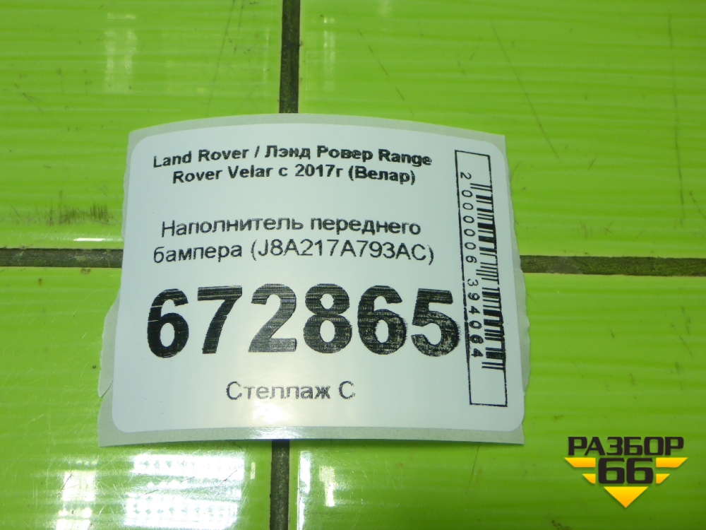 Наполнитель переднего бампера (J8A217A793AC) для Land Rover Range Rover Velar с 2017г (Велар) в Екатеринбурге