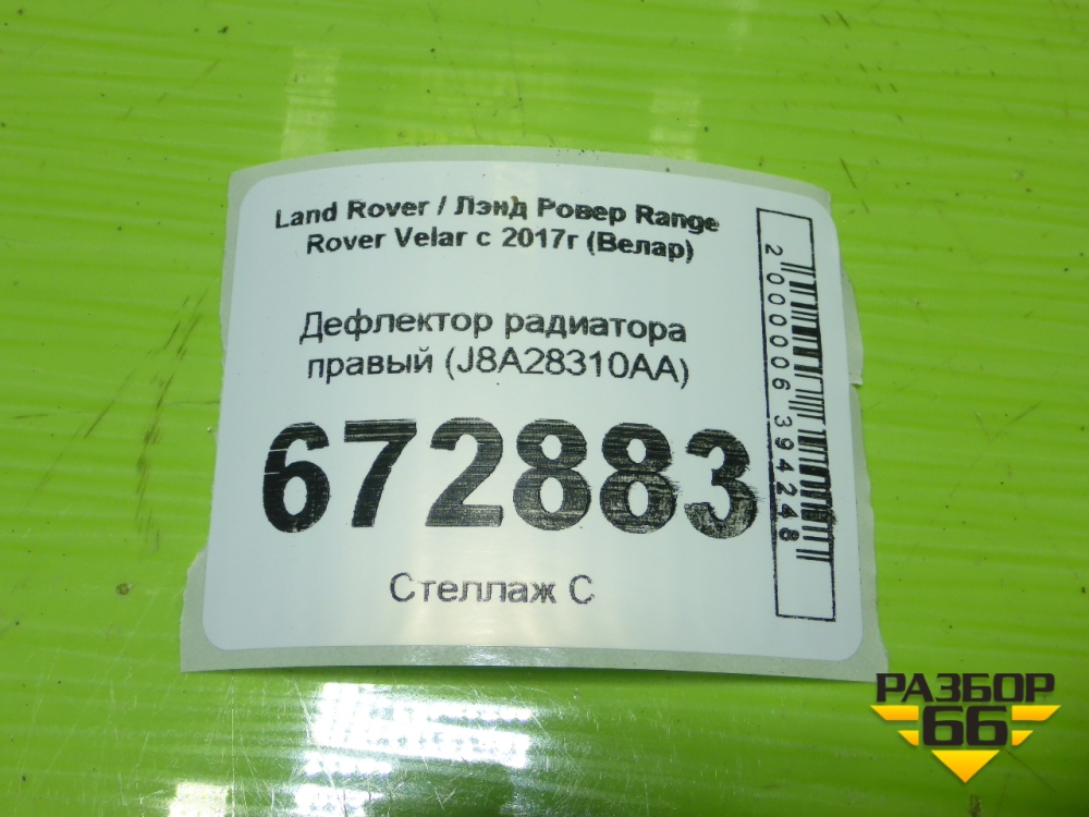 Дефлектор радиатора правый (J8A28310AA) для Land Rover Range Rover Velar с 2017г (Велар) в Екатеринбурге