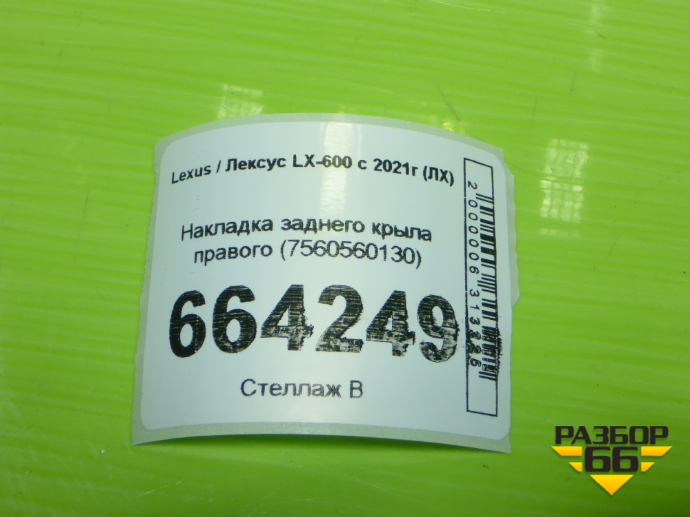 Накладка заднего крыла правого (7560560130) для Lexus LX-600 с 2021г (ЛХ) в Екатеринбурге