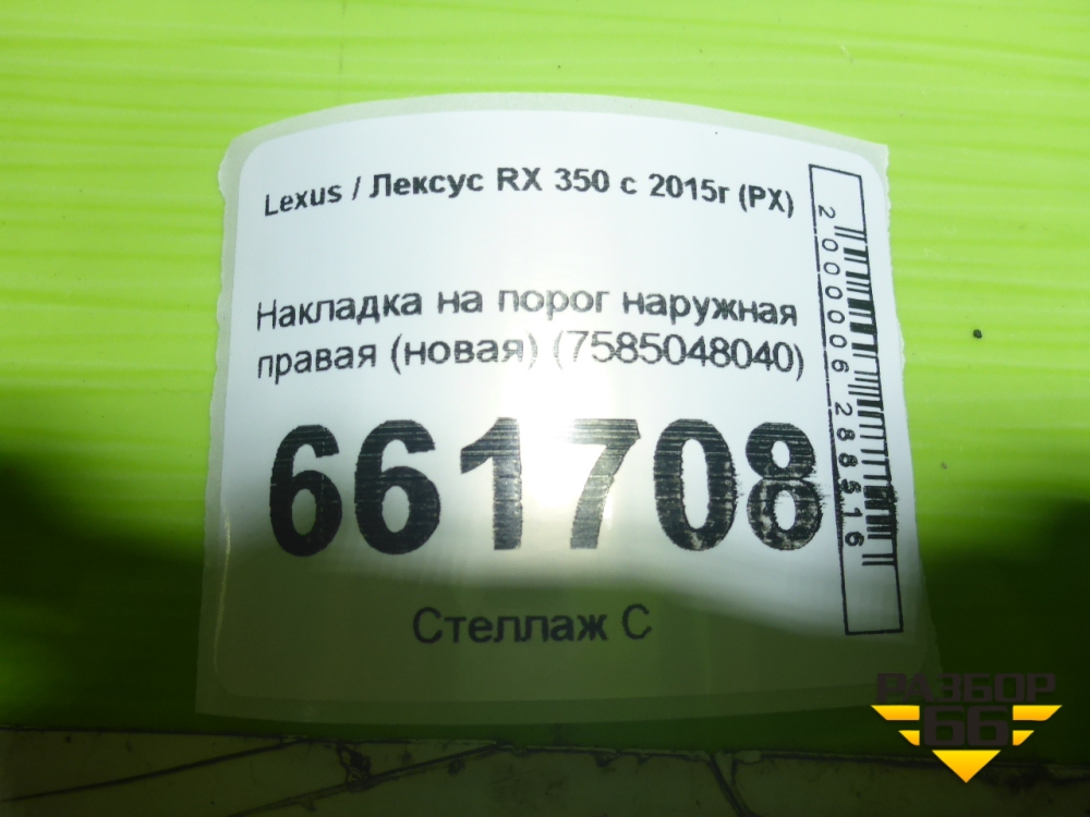 Накладка на порог наружная правая (новая) (7585048040) для Lexus RX 350 c 2015г (РХ) в Екатеринбурге