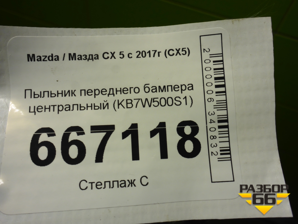 Пыльник переднего бампера центральный (KB7W500S1) для Mazda CX 5 с 2017г (СХ5) в Екатеринбурге