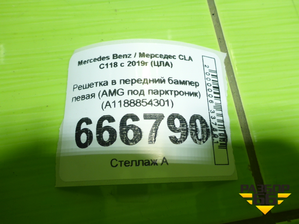 Решетка в передний бампер левая (AMG под парктроник) (A1188854301) для Mercedes Benz CLA C118 с 2019г (ЦЛА) в Екатеринбурге
