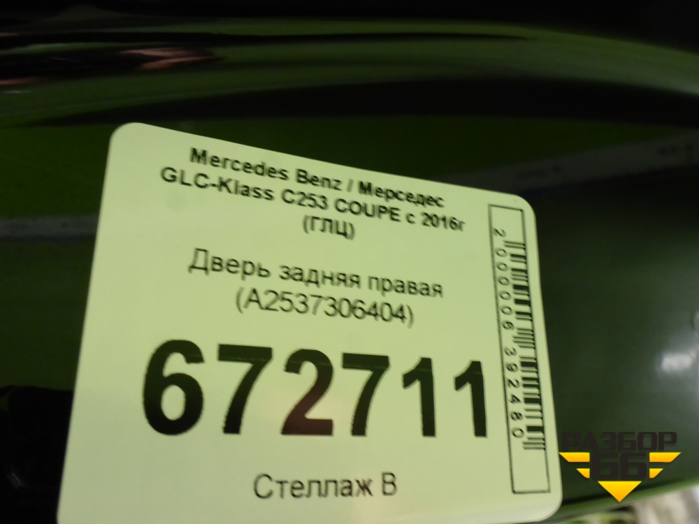 Дверь задняя правая (A2537306404) для Mercedes Benz GLC-Klass C253 COUPE с 2016г (ГЛЦ) в Екатеринбурге