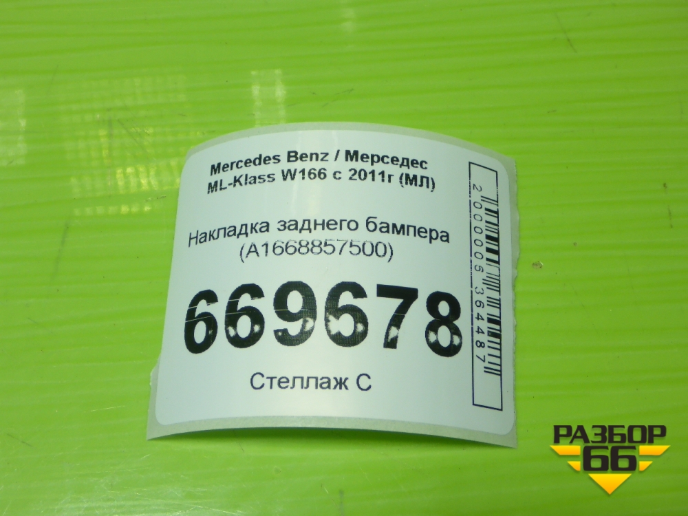 Накладка заднего бампера (A1668857500) для Mercedes Benz ML-Klass W166 c 2011г (МЛ) в Екатеринбурге