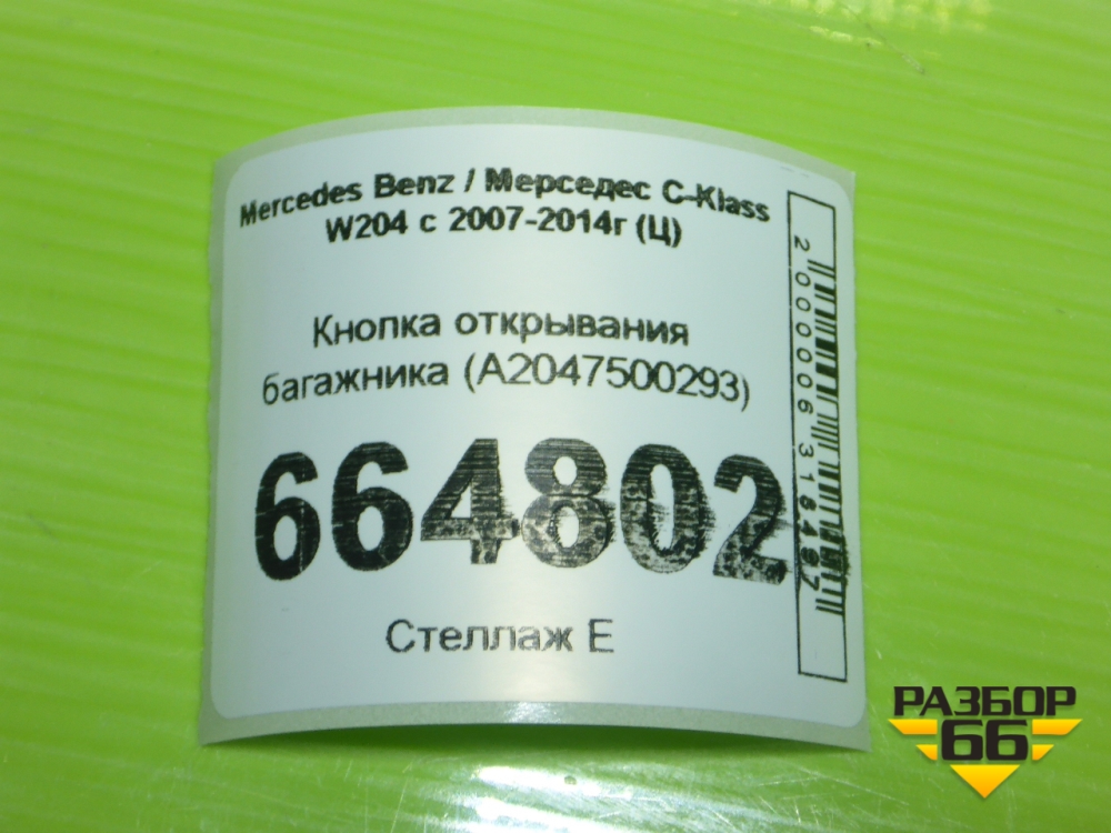 Кнопка открывания багажника (A2047500293) для Mercedes Benz C-Klass W204 с 2007-2014г (Ц) в Екатеринбурге