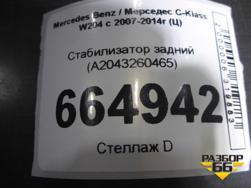 Стабилизатор задний (A2043260465) для Mercedes Benz C-Klass W204 с 2007-2014г (Ц) в Екатеринбурге