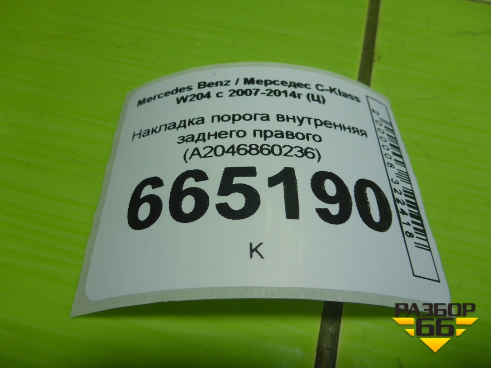 Накладка порога внутренняя заднего правого (A2046860236) для Mercedes Benz C-Klass W204 с 2007-2014г (Ц) в Екатеринбурге