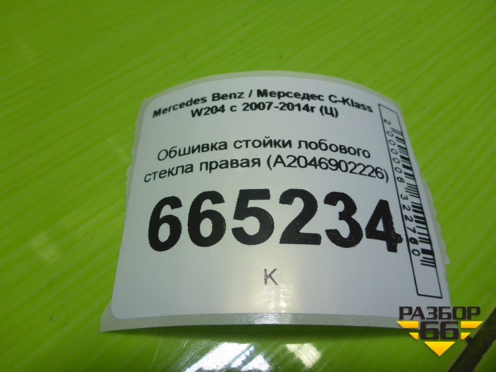 Обшивка стойки лобового стекла правая (A2046902226) для Mercedes Benz C-Klass W204 с 2007-2014г (Ц) в Екатеринбурге