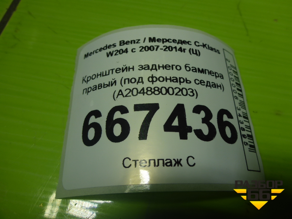 Кронштейн заднего бампера правый (под фонарь седан) (A2048800203) для Mercedes Benz C-Klass W204 с 2007-2014г (Ц) в Екатеринбурге