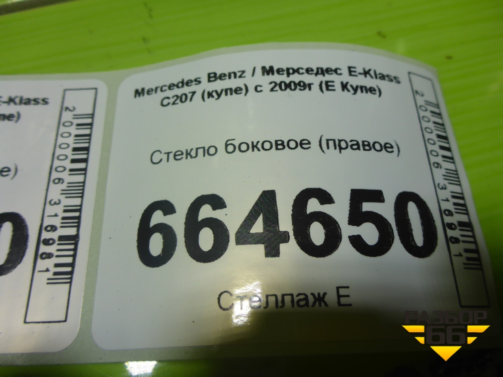 Стекло боковое (правое) для Mercedes Benz E-Klass C207 (купе) с 2009г (Е Купе) в Екатеринбурге