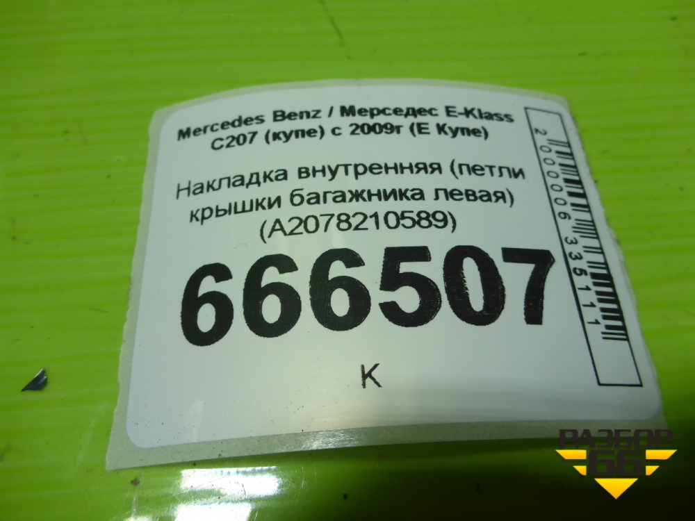 Накладка внутренняя (петли крышки багажника левая) (A2078210589) для Mercedes Benz E-Klass C207 (купе) с 2009г (Е Купе) в Екатеринбурге