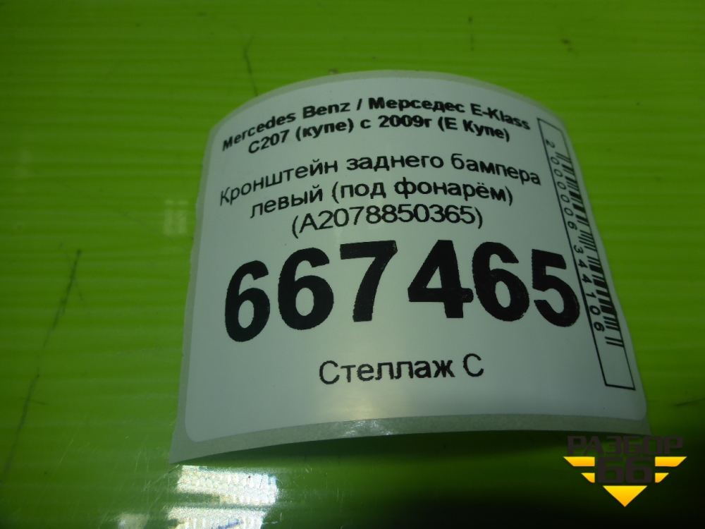 Кронштейн заднего бампера левый (под фонарём) (A2078850365) для Mercedes Benz E-Klass C207 (купе) с 2009г (Е Купе) в Екатеринбурге