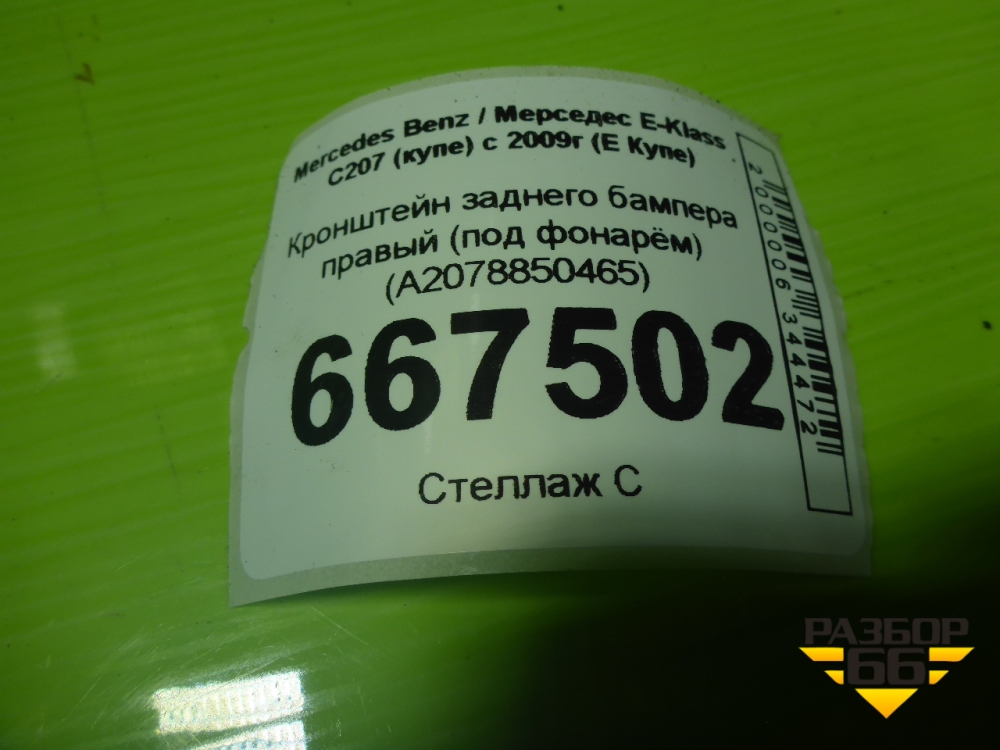 Кронштейн заднего бампера правый (под фонарём) (A2078850465) для Mercedes Benz E-Klass C207 (купе) с 2009г (Е Купе) в Екатеринбурге
