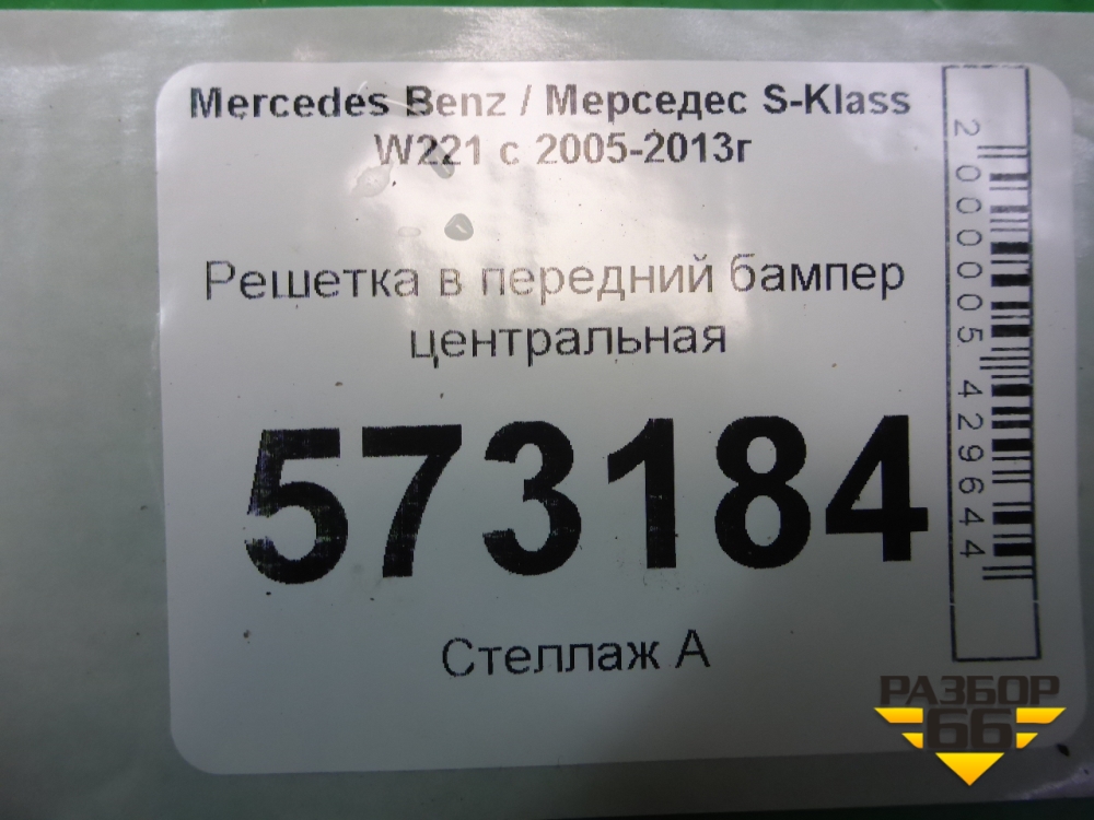 Решетка в передний бампер центральная (после 2009г) (A2218852322) для Mercedes Benz S-Klass W221 с 2005-2013г (С) в Екатеринбурге