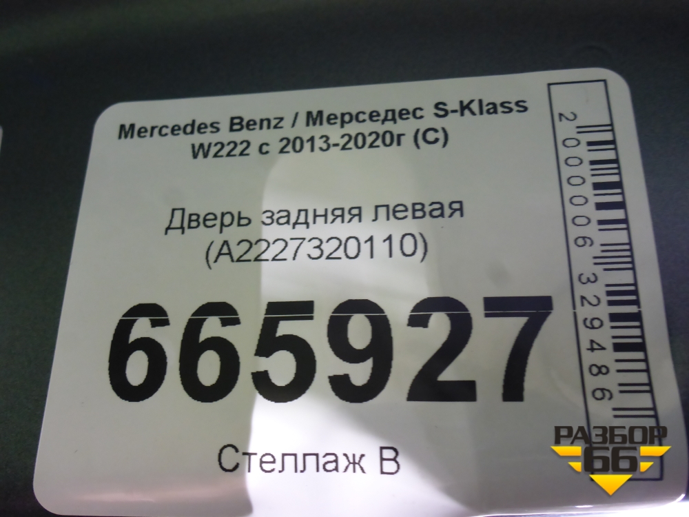 Дверь задняя левая (A2227320110) для Mercedes Benz S-Klass W222 с 2013-2020г (С) в Екатеринбурге