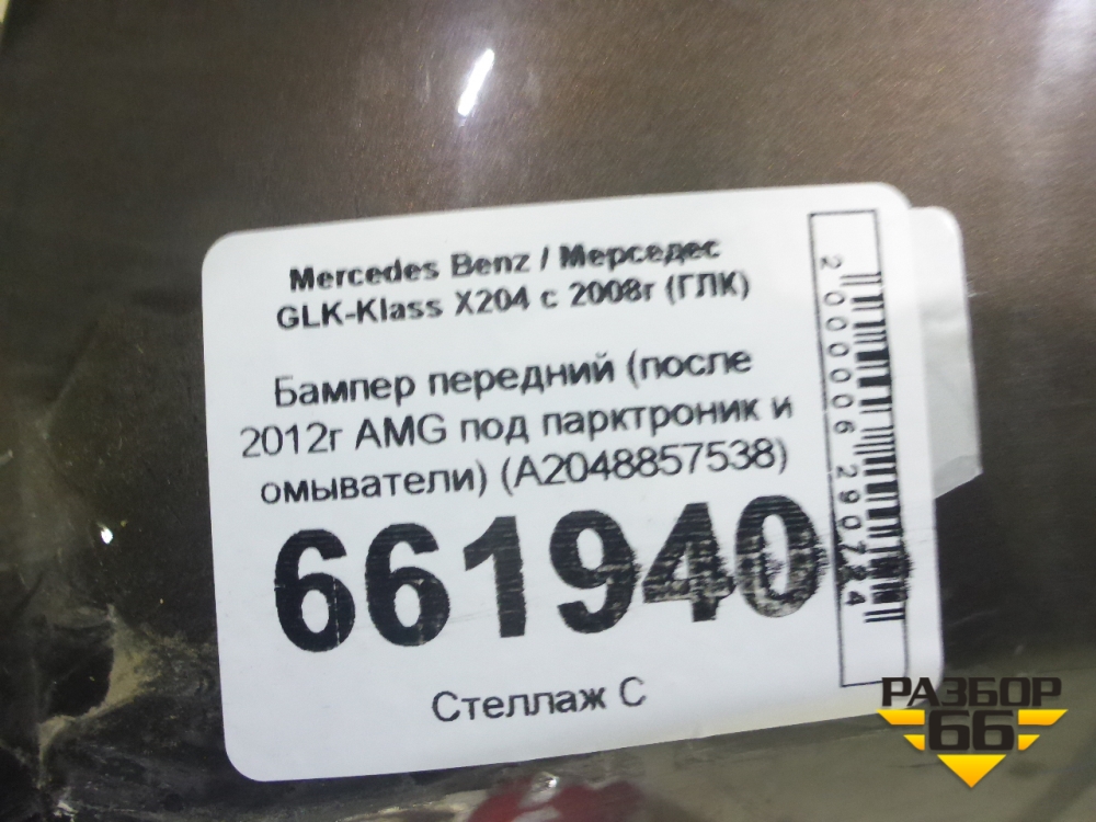 Бампер передний (после 2012г AMG под парктроник и омыватели) (A2048857538) для Mercedes Benz GLK-Klass X204 с 2008г (ГЛК) в Екатеринбурге