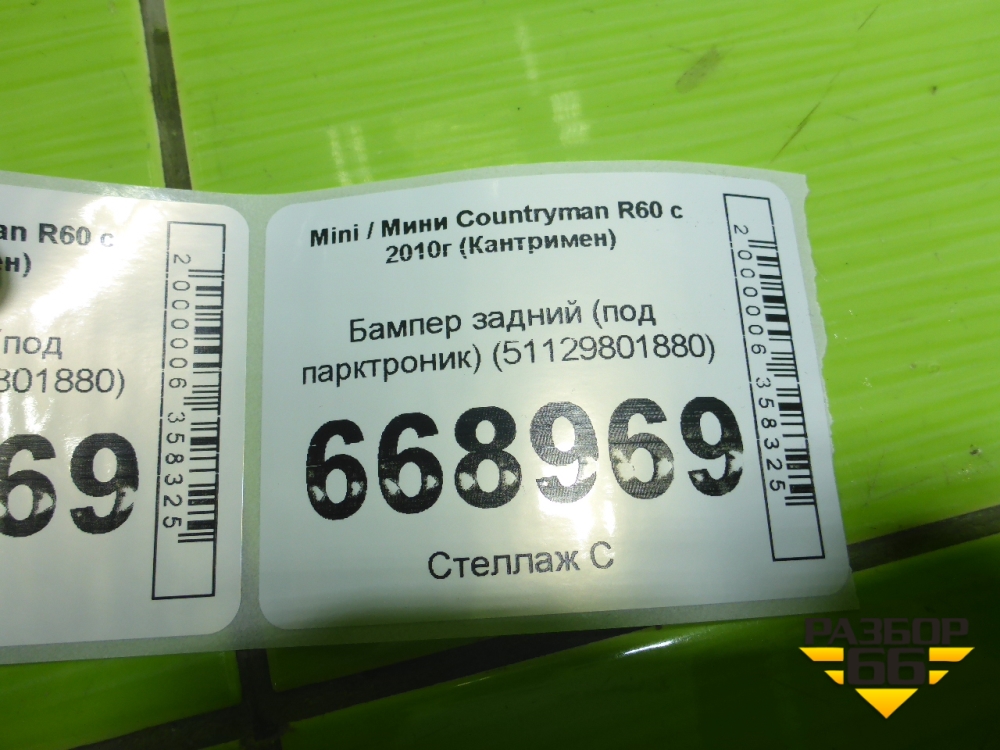 Бампер задний (под парктроник) (51129801880) для Mini Countryman R60 с 2010г (Кантримен) в Екатеринбурге