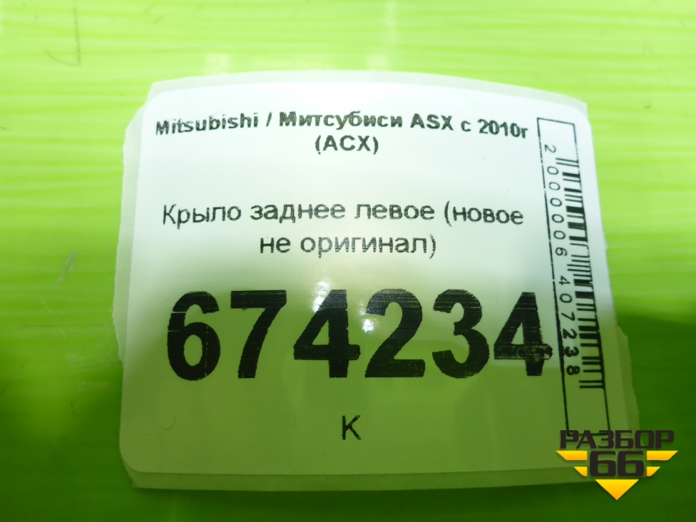 Крыло заднее левое (новое не оригинал) для Mitsubishi ASX с 2010г (АСХ) в Екатеринбурге